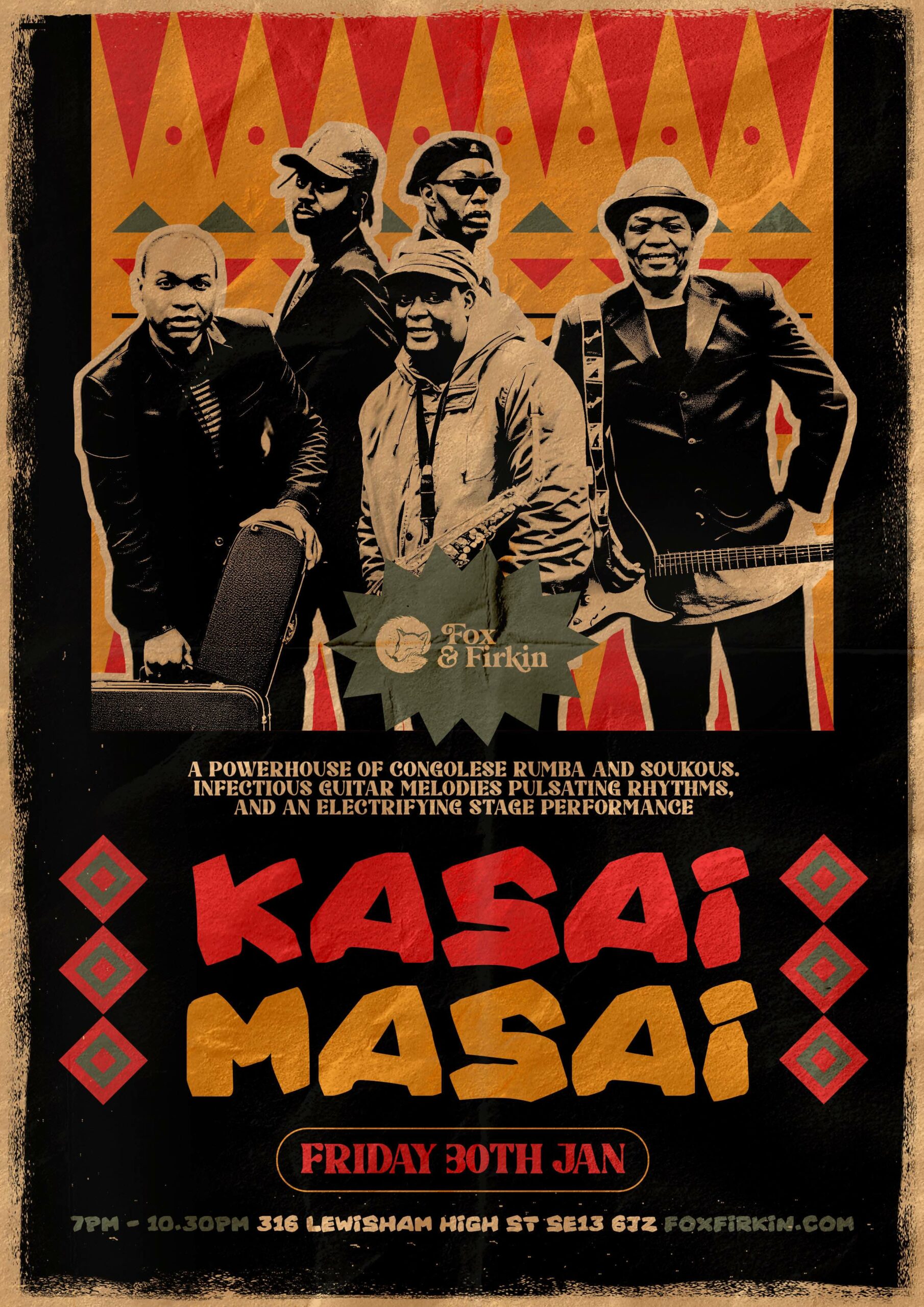 Kasai Masai has become a powerhouse in the world of Rumba and Soukous, blending infectious guitar melodies, pulsating rhythms, and electrifying stage performances.